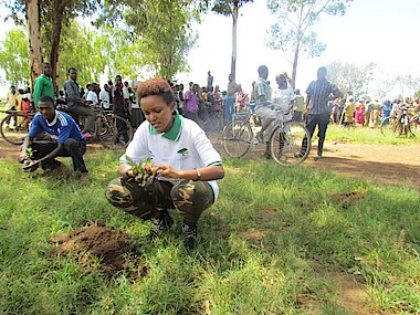 Uwase Hirwa Honorine, mu gikorwa cyo gutera igiti.