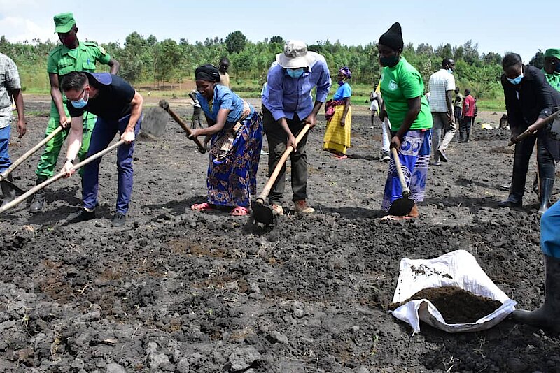 Umuyobozi w'Akarere ka Gatsibo Gasana Richard arikumwe n'izindi nzego bifatanyije n'abaturage b'Umurenge wa Gatsibo gutangiza igihembwe cy'ihinga cya 2022B batera imbuto ya Soya kuri hegitari 10